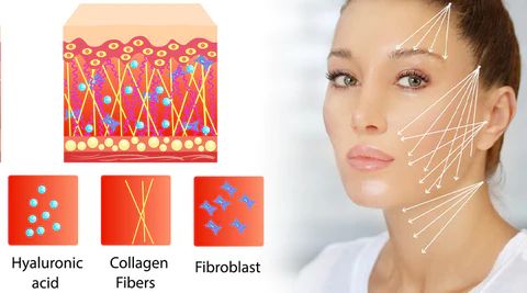 Първите признаци на стареене са загубата на обем и еластична тъкан или еластин в кожата, което причинява фини линии, бръчки около очите, вдлъбнати очи и отпускане на кожата, особено около устата и челюстта. Тези промени стават по-забележими с напредването на възрастта и по-нататъшната загуба на подкожния слой мастната тъкан между кожата и мускулите.