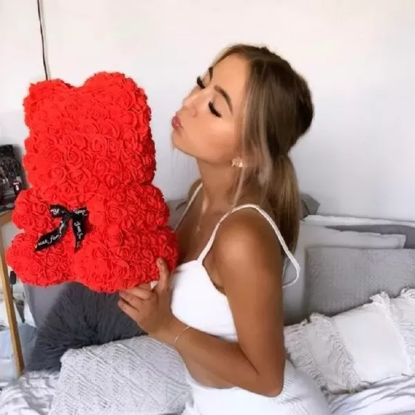 Мечето от рози е ръчно изработено от над 500 синтетични рози, които символизират любовта, така че това е най-красивият начин да се закълнете на любимите си хора във вечна любов и привързаност.