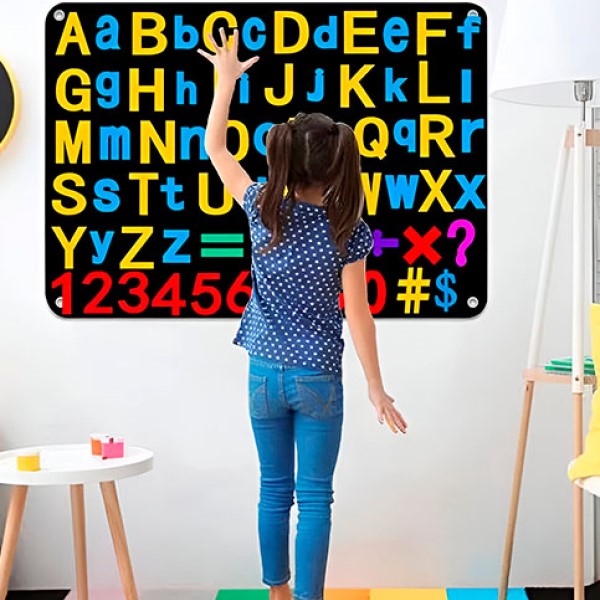 Табло от филц с лесно закрепване на букви и цифри. Включва 30 филцови стикера. Размери: 96,5 × 68,5 см.