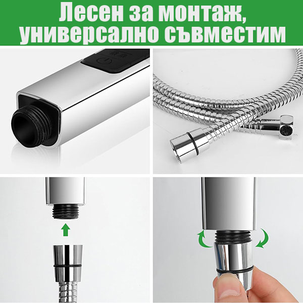 Съвместимост: Универсално съвпадение за всички стандартни душ маркучи