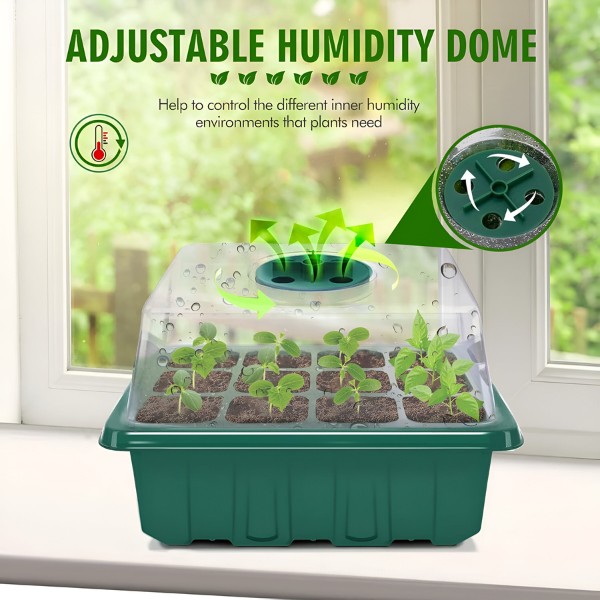 Всяка тава има 12 дупки и капак с превключвател за вентилация. Сега можете да контролирате нивата на влажност и да осигурите най-добрата среда за вашите разсади. Отглеждайте здрави, добре аерирани корени за по-силни растения.