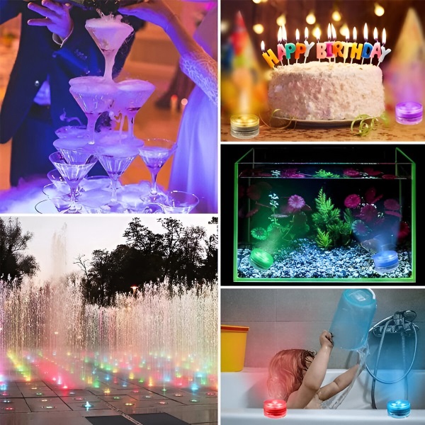 Без щепсели, без искри! Подобрете с лекота атмосферата на всеки аквариум, съд за вода или кофа за лед. Тези миниатюрни водни лампички с ярки цветове разкрасяват елегантно басейна, аквариума, вазата или всеки декор. Независимо дали сте домакини на парти или се наслаждавате на спокойна вечер, тези универсални RGB светлини ще подобрят обстановката мигновено.