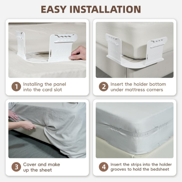 Тези държачи ги заключват на място, така че да спите непрекъснато и да се събудите в гладко, без бръчки легло.